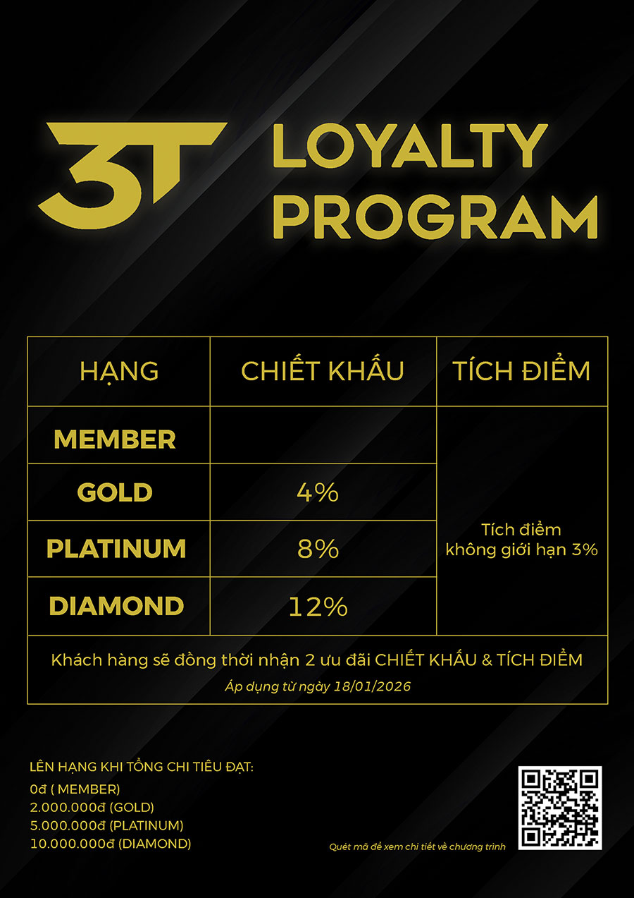 Nhằm mang đến nhiều quyền lợi hơn cho khách hàng thân thiết, 3T Streetwear chính thức triển khai chương trình khách hàng thân thiết mới với hệ thống hạng thành viên rõ ràng, minh bạch cùng mức ưu đãi hấp dẫn. Chương trình áp dụng cho cả khách hàng mới và khách hàng đã mua sắm trước đây.