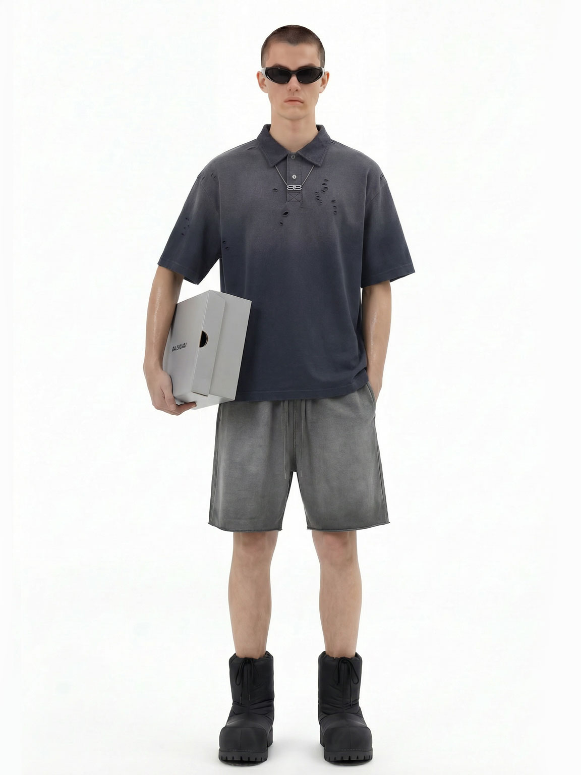 ARTIE Ripped Washed Polo – Dark Grey