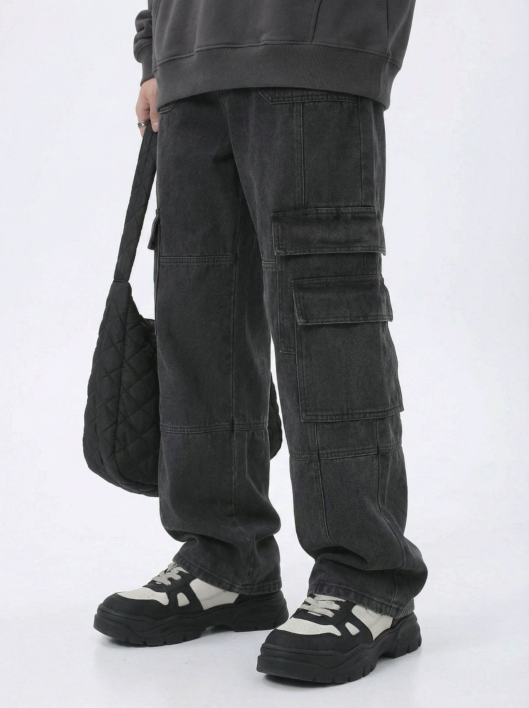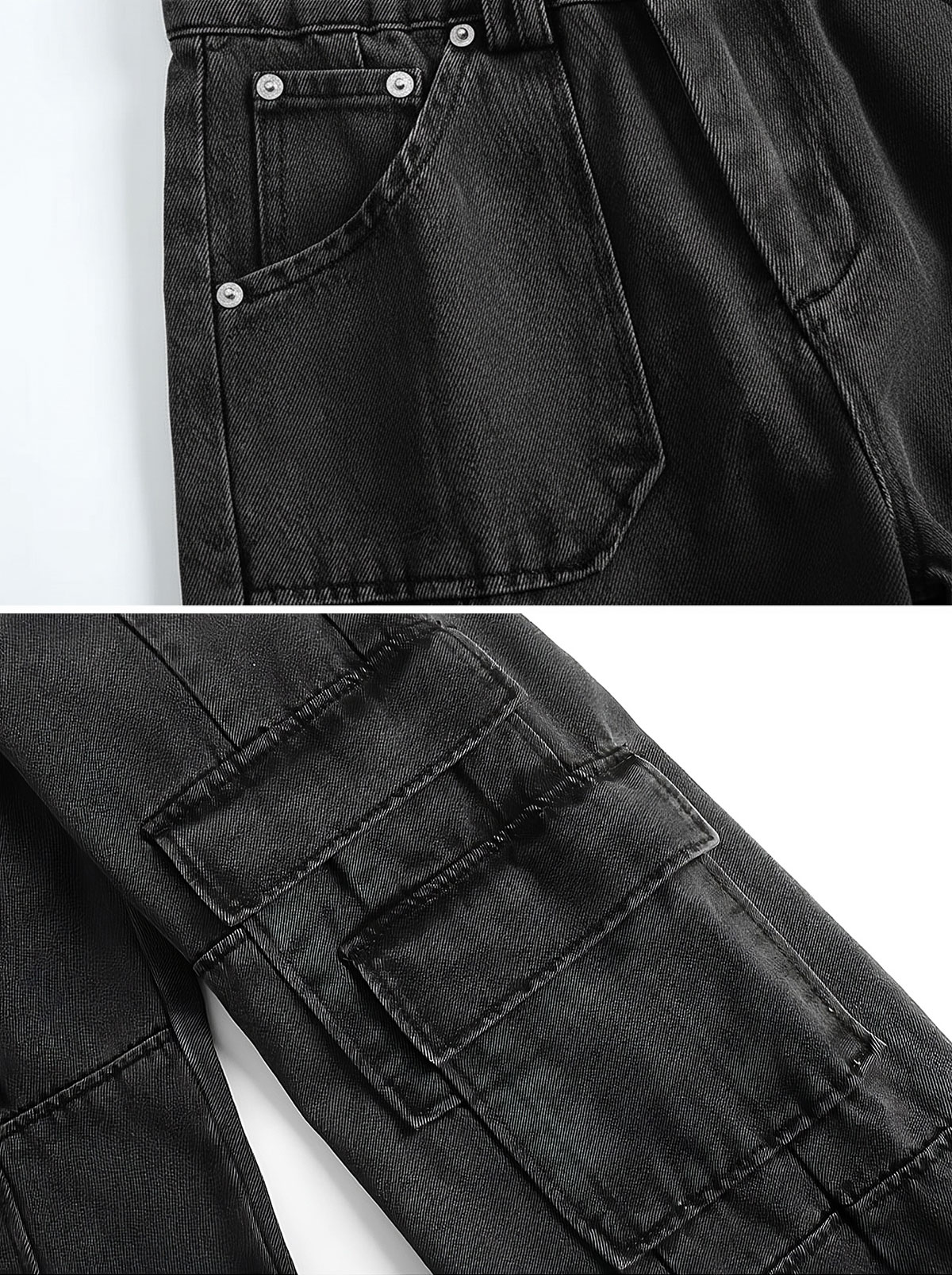 Quần Jean cargo ống rộng màu đen wash
