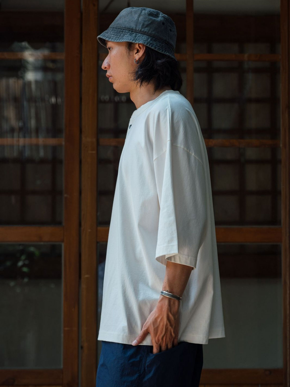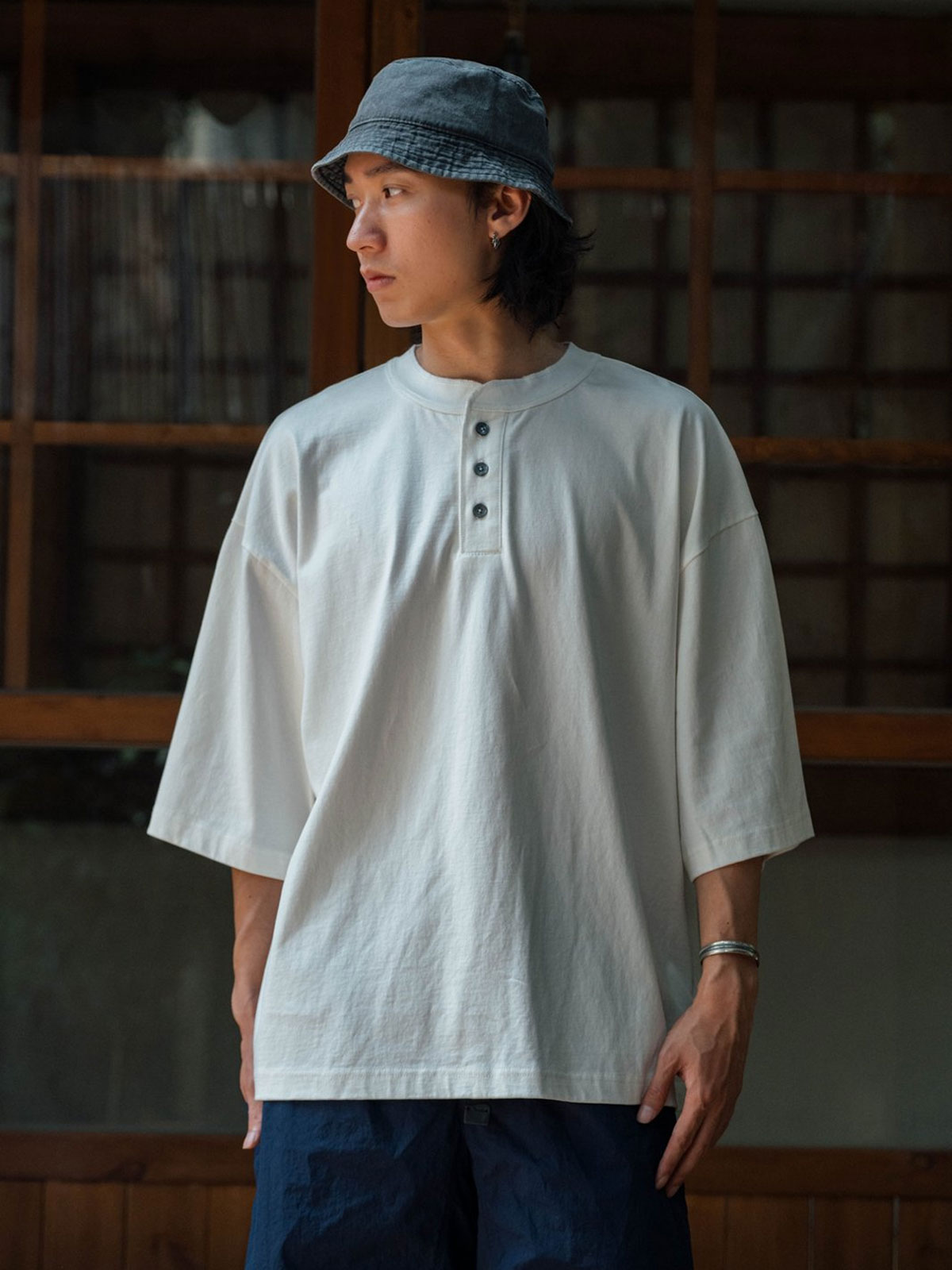 Japanese-style Henley neck T-shirt