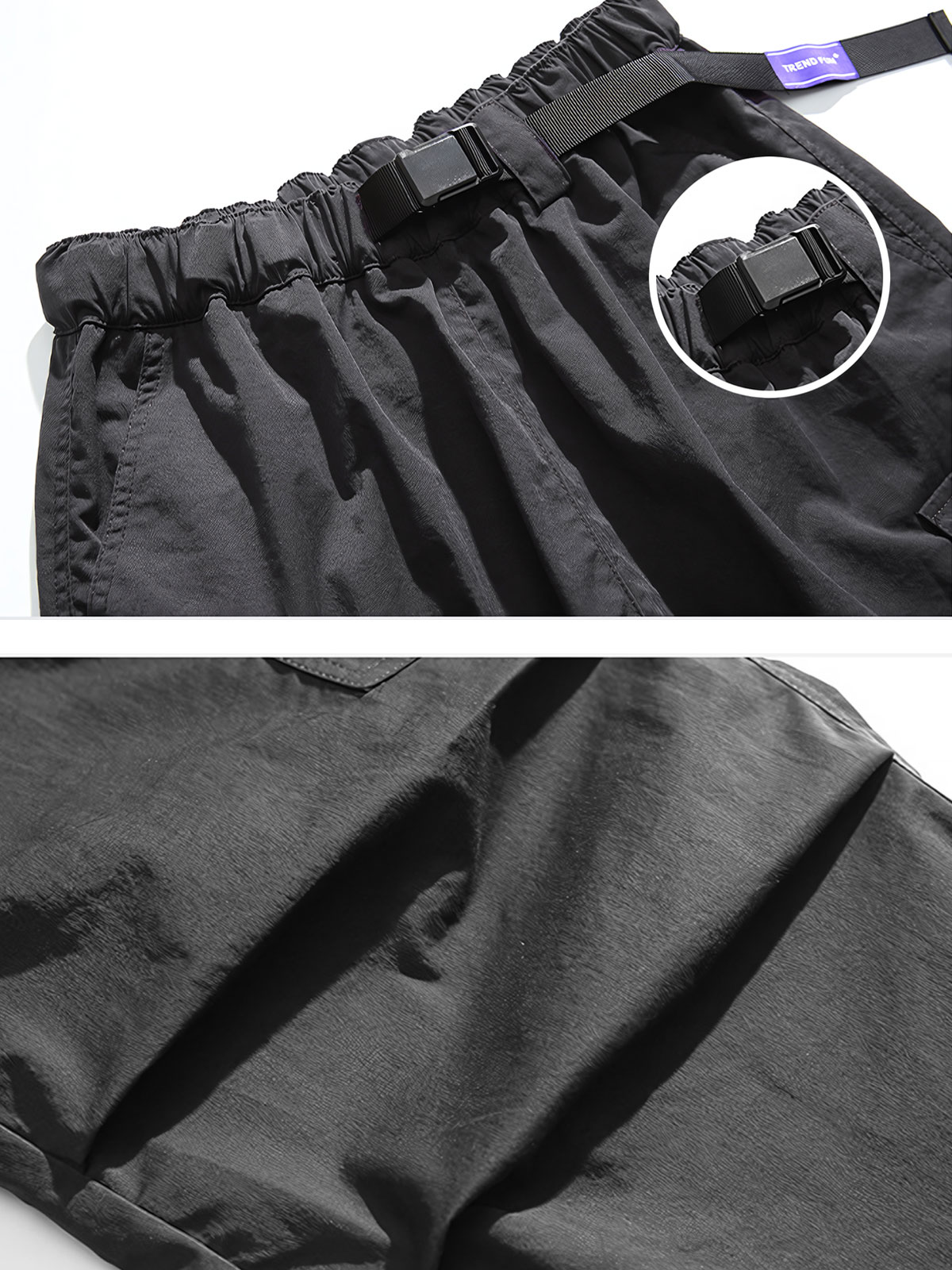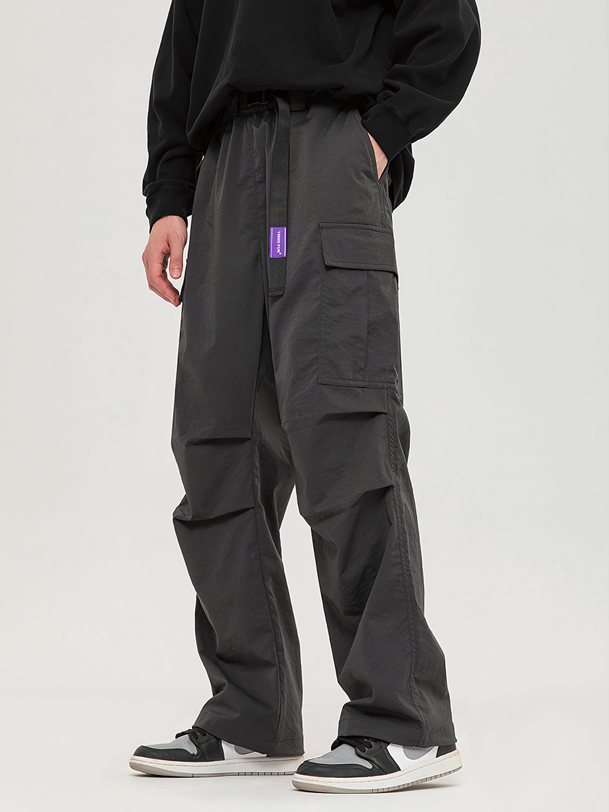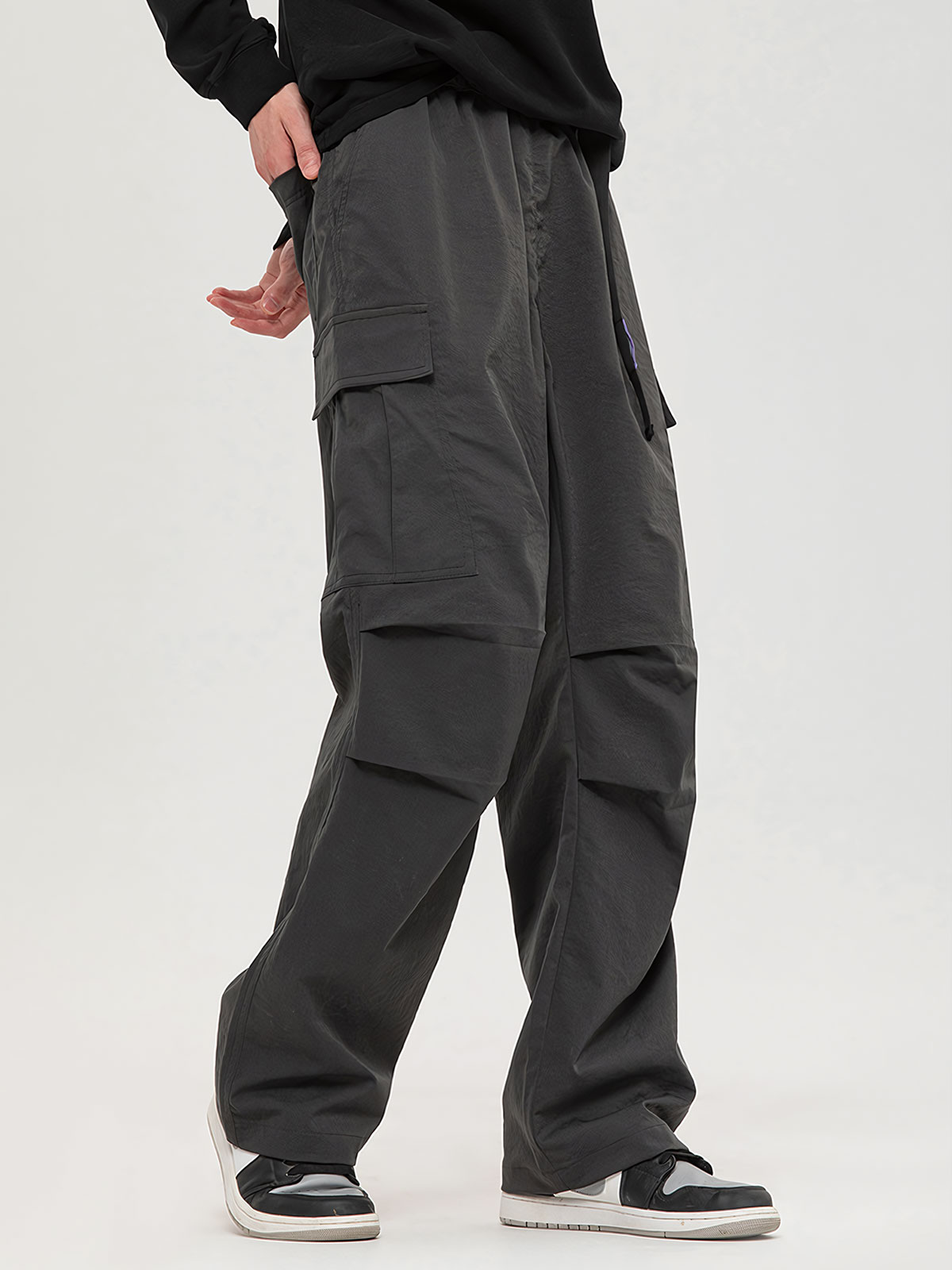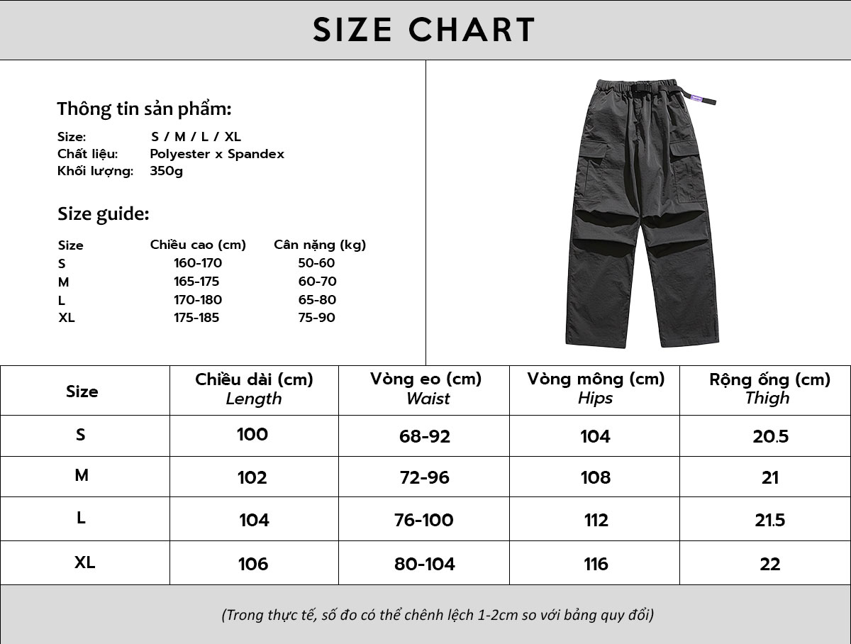 Quần cargo pant chất liệu polyester, cảm nhận gần giống vải dù nhưng mềm mại cho cảm giác mặc thoải máiQuần dày dặn có độ kéo đứng formForm relaxed fit Polyester cargo pantsThick fabric with good structure retentionRelaxed fit form